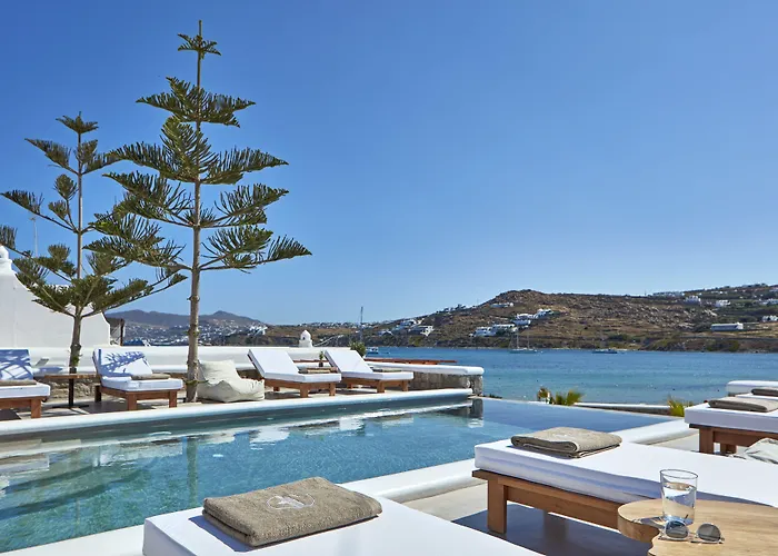 Het aparthotel ligt op afstand van 6 km van het Huis van Cleopatra, op afstand van 2 km van de Matoyianni straat. Het zandstrand bevindt zich op circa 25 minuten wandelafstand van Mykonos Waves Beach House & Suites Ornos. Het Klein Venetië bevindt zich op afstand van 3 km van dit pand met 7 kamers.